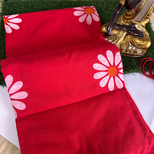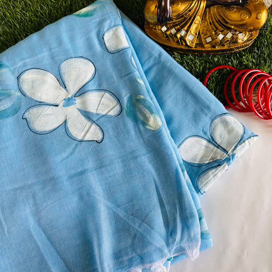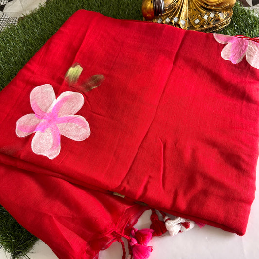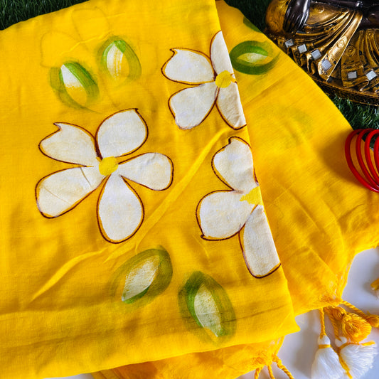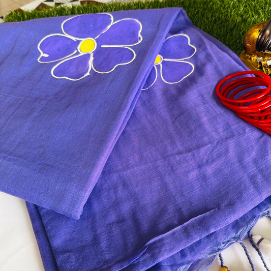 Gul-Daisy Khadi Cotton Handpainted Saree