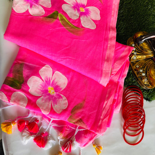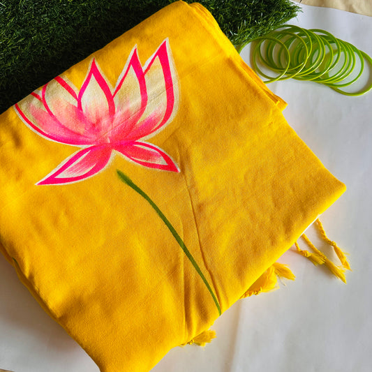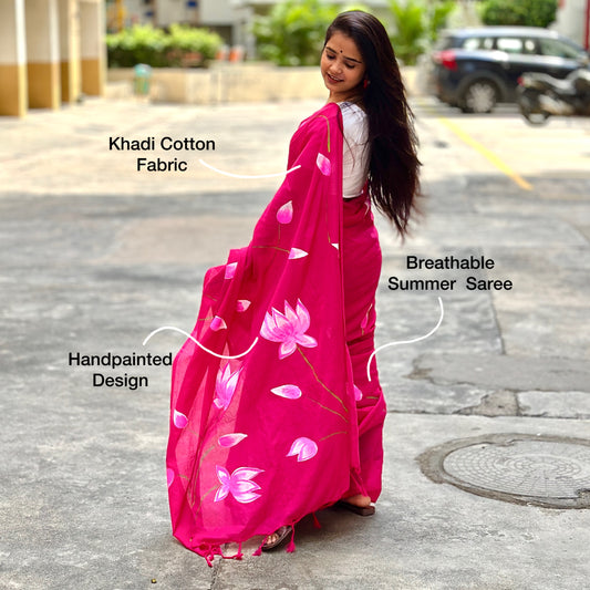 Gulabi Kamal – Handpainted Khadi Cotton Saree