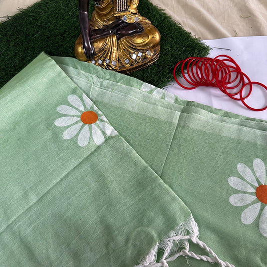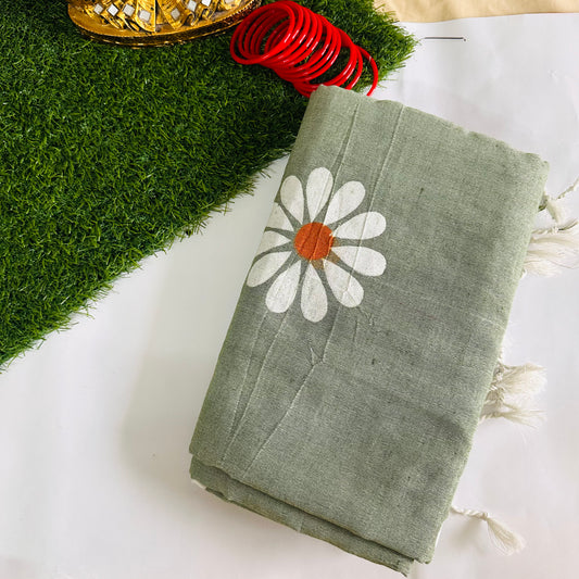 Hari-Daisy – Handpainted Khadi Cotton Saree