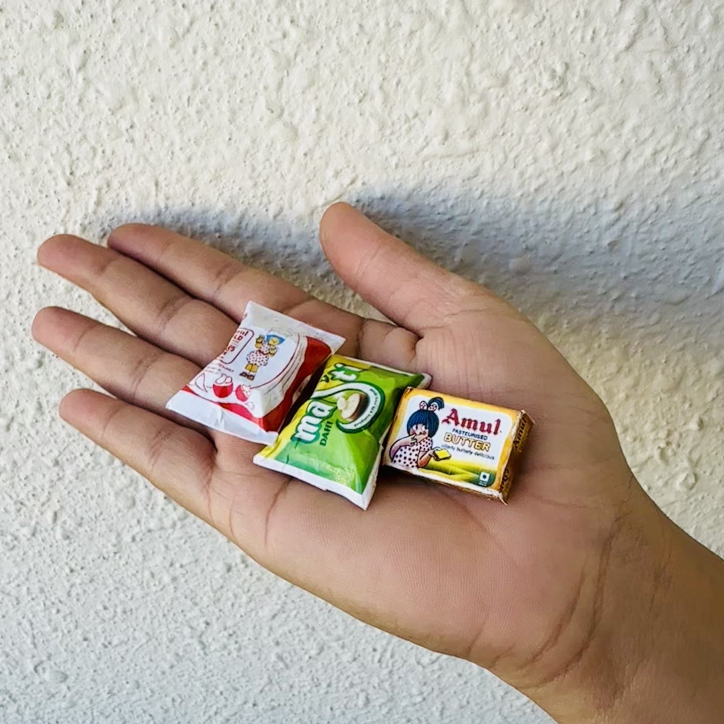 Amul Set fridge magnet is here with favorites food of many of us. But wait! you cannot eat it! This beautiful unique Food are delicately sculpted and miniature packaging is done. The magnet is stuck and the whole tiny table is sealed with resin. Resin keeps the parts intact in its place, protects the colours, enables easy cleaning.Unique choice for gifting your loved ones Strong magnet to attach to the fridge .This magnet is made of Polymer Clay and is completely handmade, extremely durable and light- weight.
