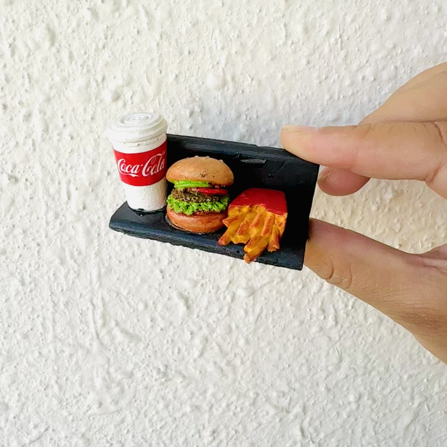 Food fridge magnet is here with favorites food of many of us. But wait! you cannot eat it! This beautiful unique Food are delicately sculpted and stuck to a pre-painted-to-wooden- effect MDF board. The magnet is stuck and the whole tiny table is sealed with resin. Resin keeps the parts intact in its place, protects the colours, enables easy cleaning.Unique choice for gifting your loved ones Strong magnet to attach to the fridge. This magnet is made of Polymer Clay and is completely handmade, extremely durable and light- weight.