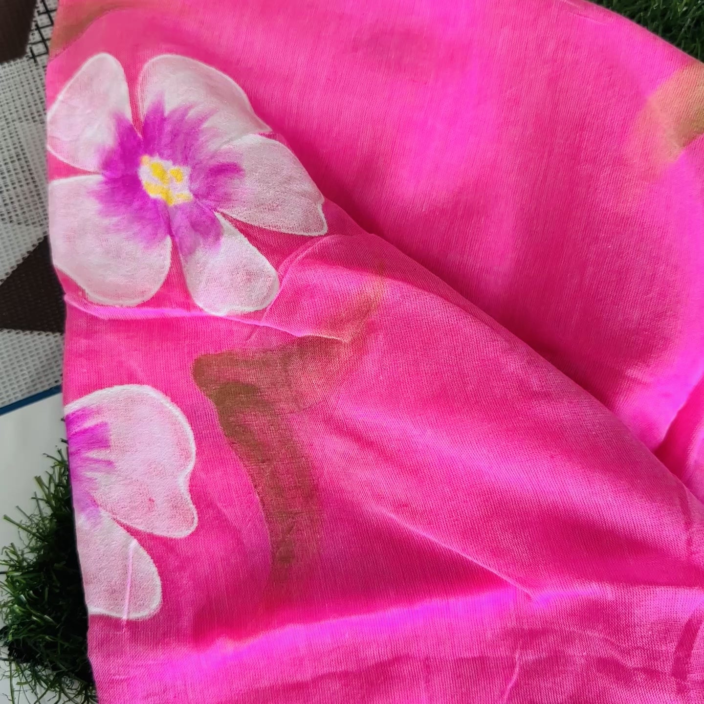 Artisan Hand-Painted: Each motif is painted by skilled artisans, making every saree one-of-a-kind.