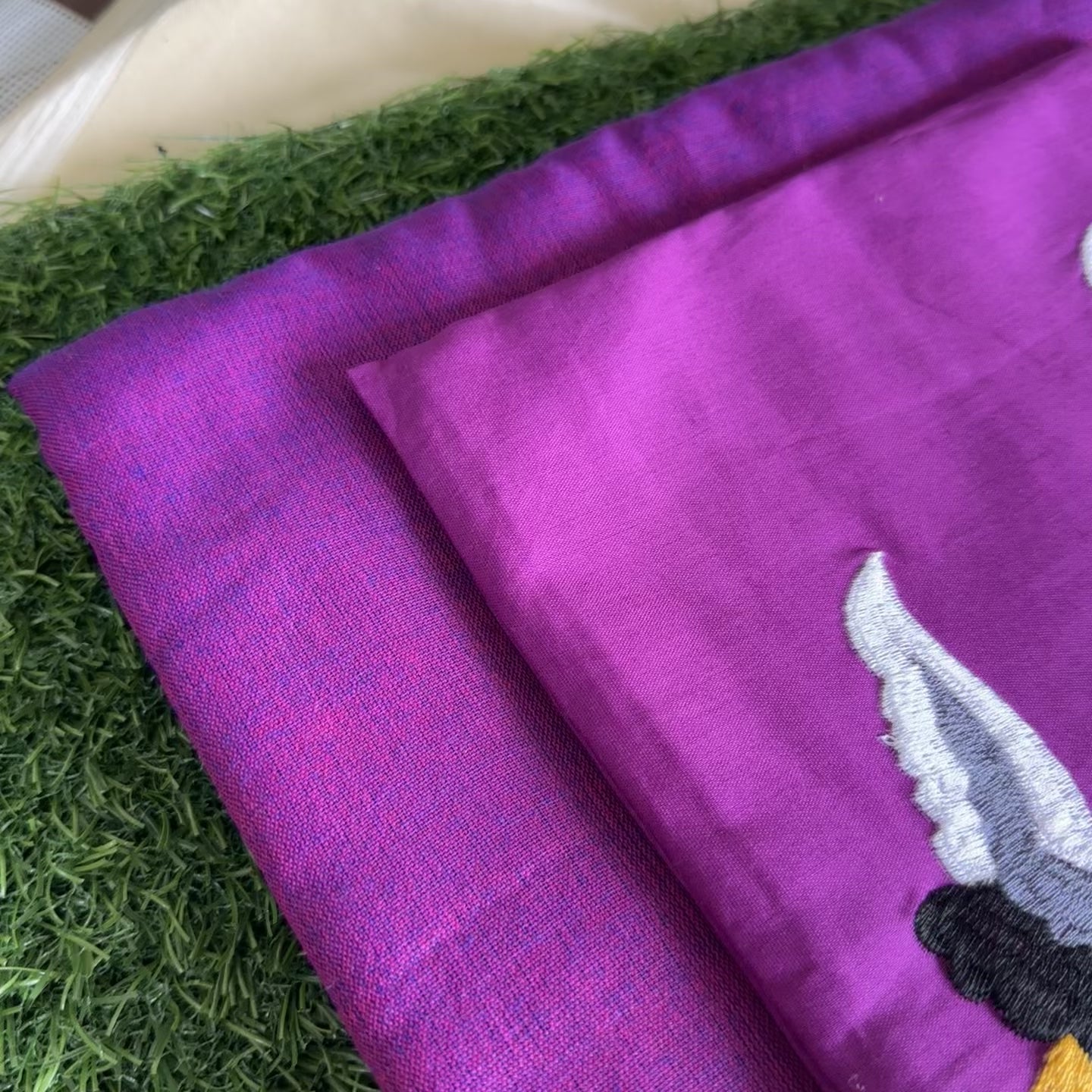 Wrap yourself in elegance with our Pakshi, a striking blend of heritage and modern grace. Crafted from soft, breathable khadi cotton, this saree comes in a rich royal purple hue adorned with bright pink tassels that add playful movement and charm.