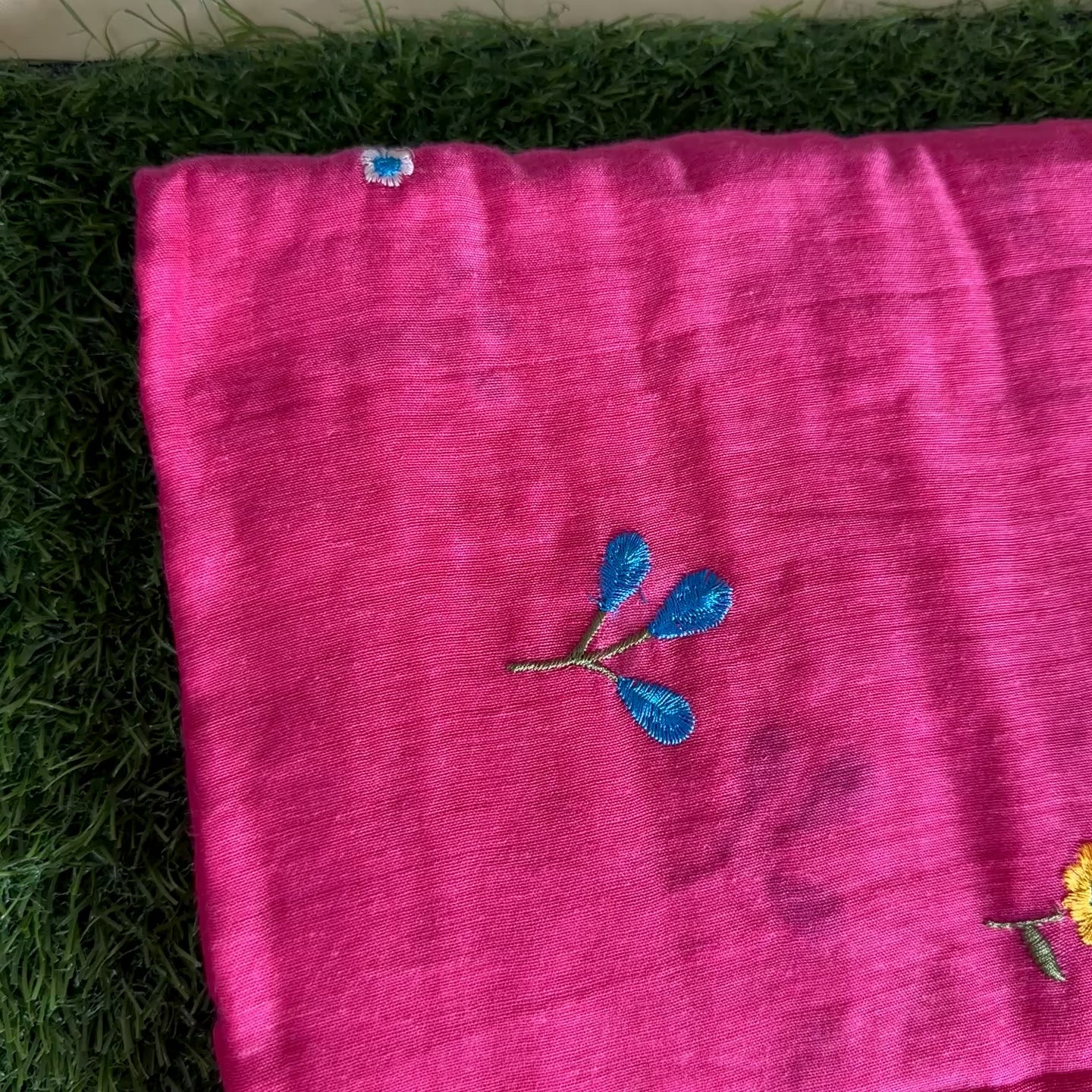 Rani Pink Hand-Embroidered Mul Cotton Saree