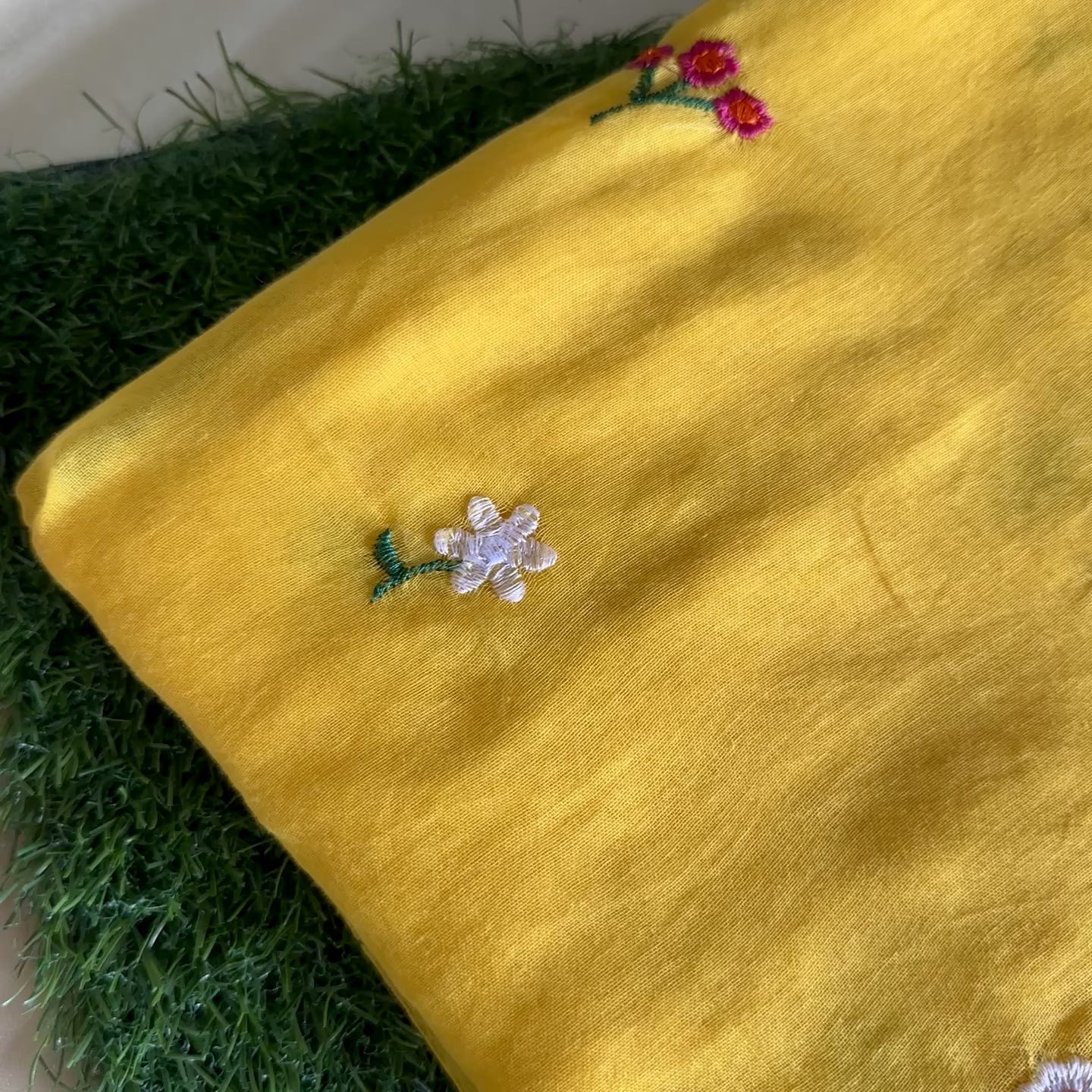 Turn heads with this radiant yellow hand-embroidered cotton saree, designed to brighten your day and wardrobe. Adorned with delicate floral motifs and crafted from breathable, soft cotton – this saree is perfect for summer celebrations, festive wear, or everyday elegance.